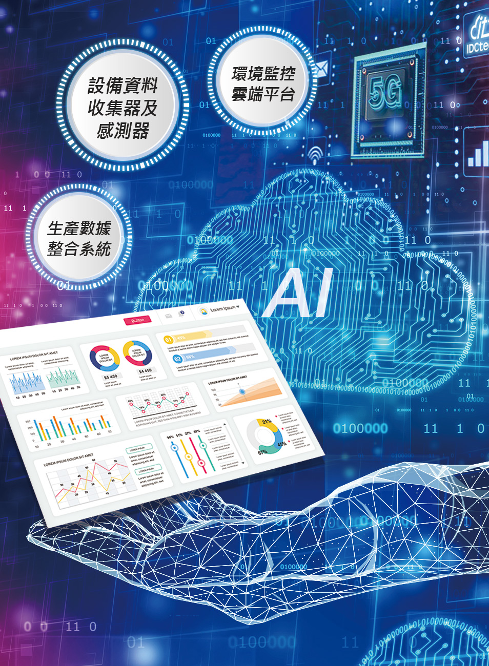 環控雲平台服務透過雲端、邊緣運算與人工智慧等先進技術驅動,邁向史上最快的5G無線通訊體驗時代,讓使用者可遠端監測環境,並自動控制設備,透過數據分析,輔助管理者即時掌握現場現況,有效提升管理效率及預警應變時效。